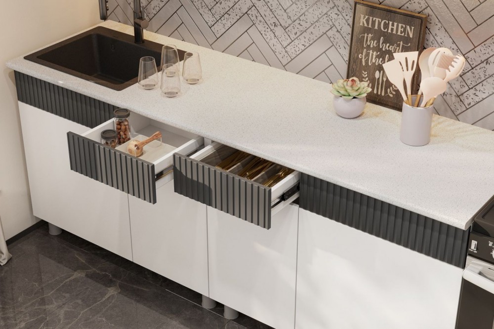Кухонный гарнитур СОФИЯ 2,0м (Белый/Бланж/Графит матовый/Антарес)